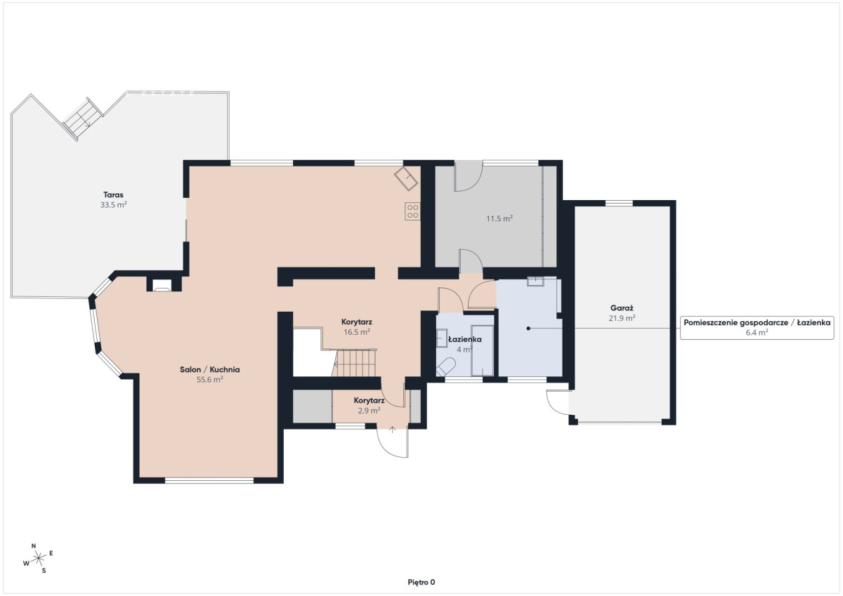 - Liczba kondygnacji: parter + użytkowe poddasze