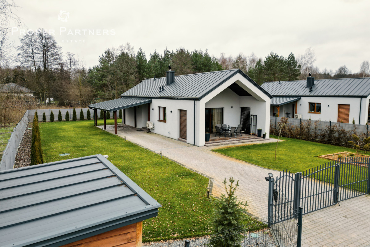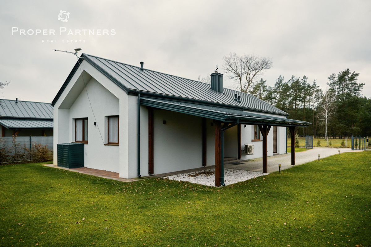 Z przyjemnością prezentuję nowoczesny, wolnostojący dom, położony w miejscowości Korzeń, gm. Wyśmierzyce, powiat białobrzeski - 80 km od Warszawy w otoczeniu lasów, natury i terenów rekreacyjnych. To propozycja dla osób, które szukają ciszy, prywatności i wytchnienia od miasta, a jednocześnie chcą korzystać z komfortu nowoczesnego budownictwa.