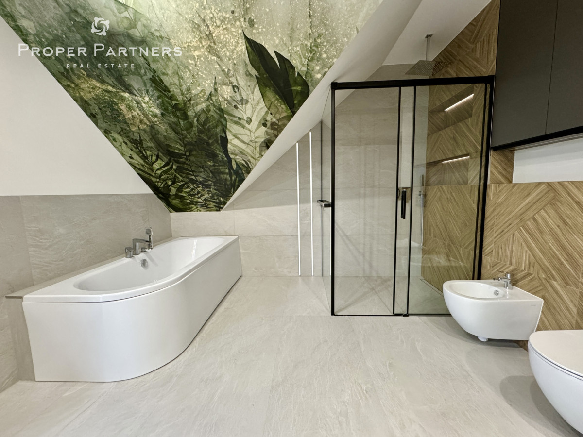 - Łazienka - wyposażona zarówno w wannę, jak i prysznic, co zwiększa komfort użytkowania.