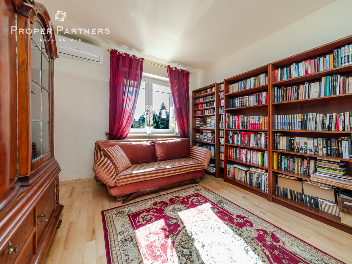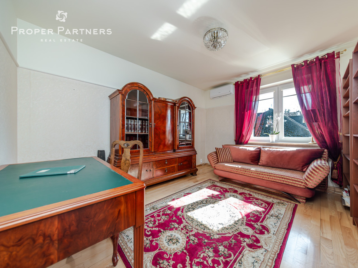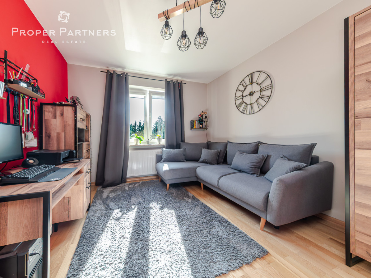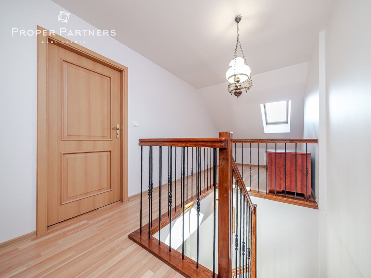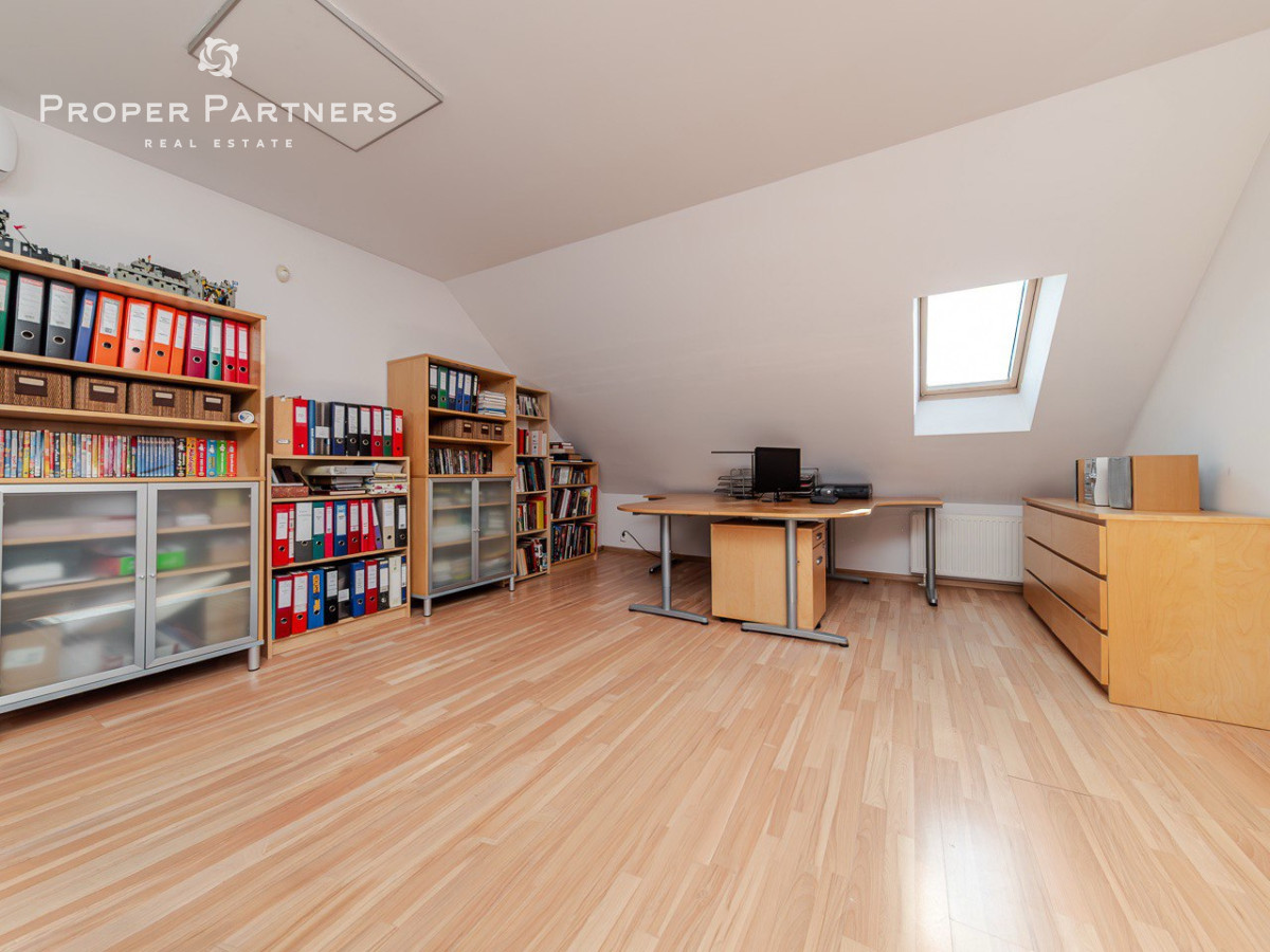 Na poddaszu znajduje się dodatkowa przestrzeń zaaranżowana obecnie jako pokój biurowy oraz miejsce do przechowywania.