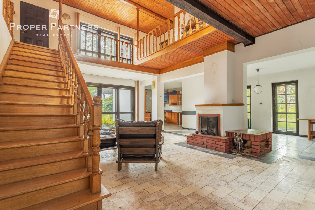 Dom posadowiony jest na pięknej działce ze starodrzewiem o powierzchni 1532m2.