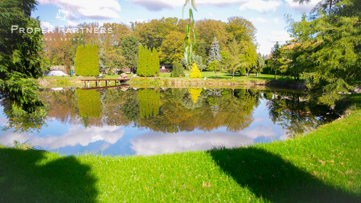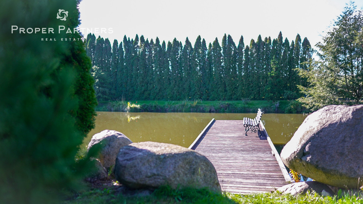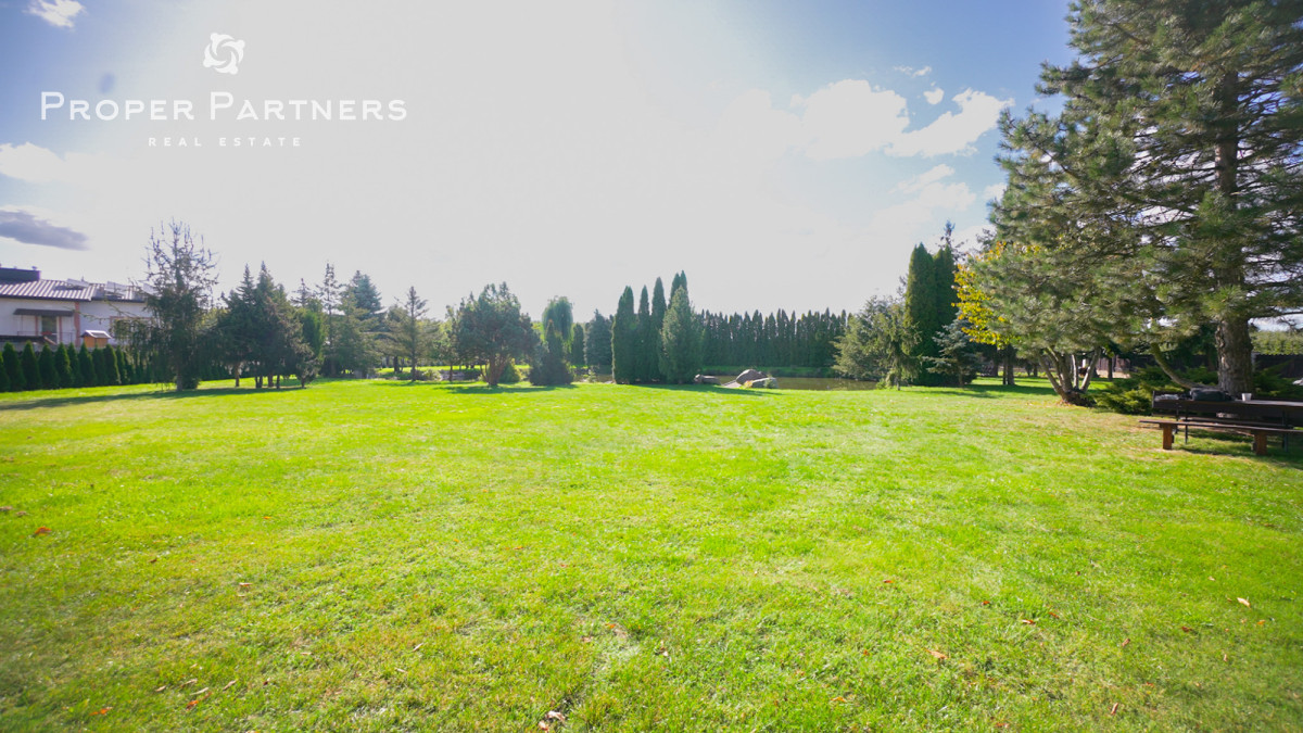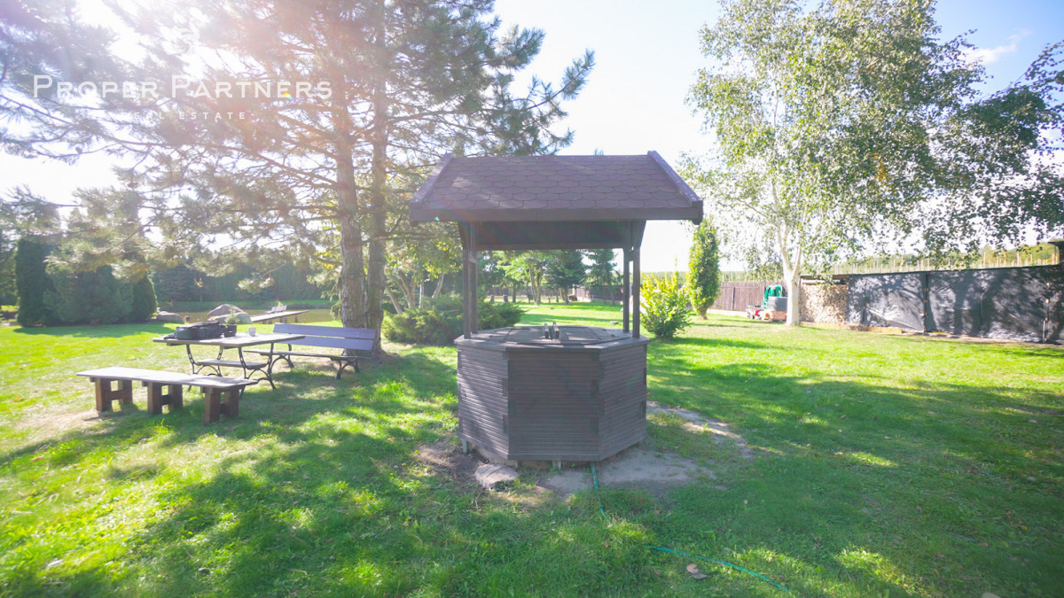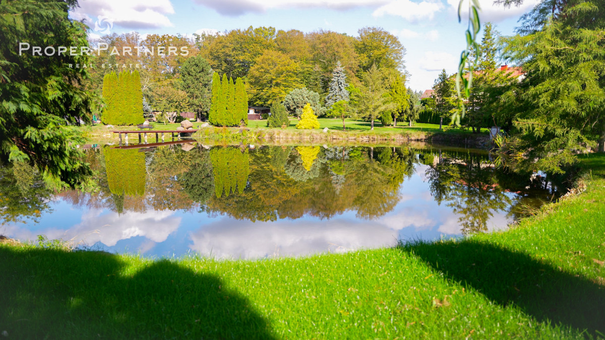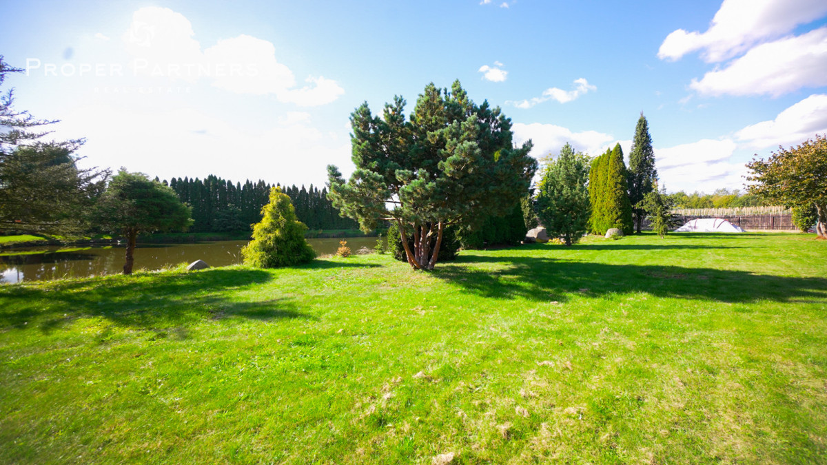 Działka zachwyca pięknym, zadbanym ogrodem oraz dużym stawem, który dodaje jej unikalnego charakteru. Przy stawie znajduje się solidny drewniany pomost, który stwarza idealne miejsce do wypoczynku i relaksu na świeżym powietrzu. Całość otoczona jest zielenią drzew i krzewów, które zapewniają prywatność oraz niepowtarzalny krajobraz o każdej porze roku.