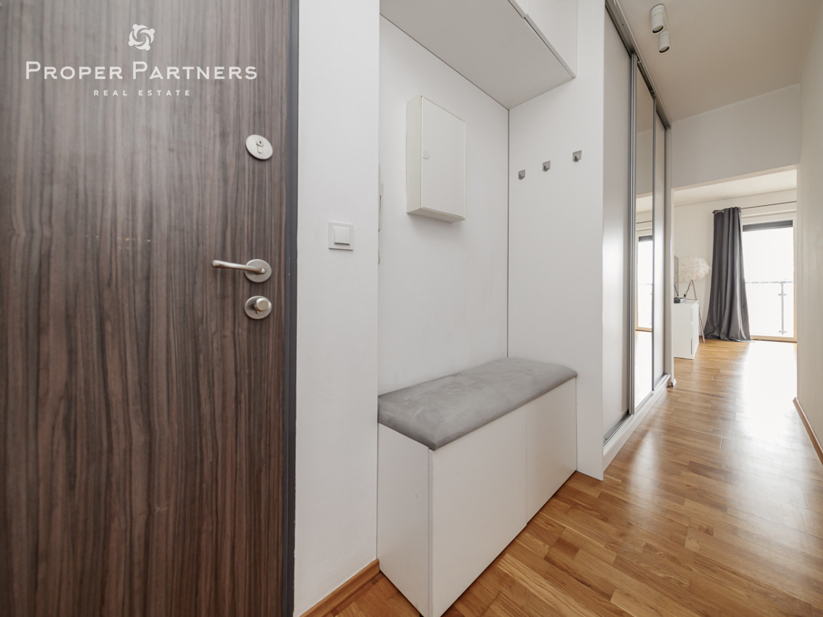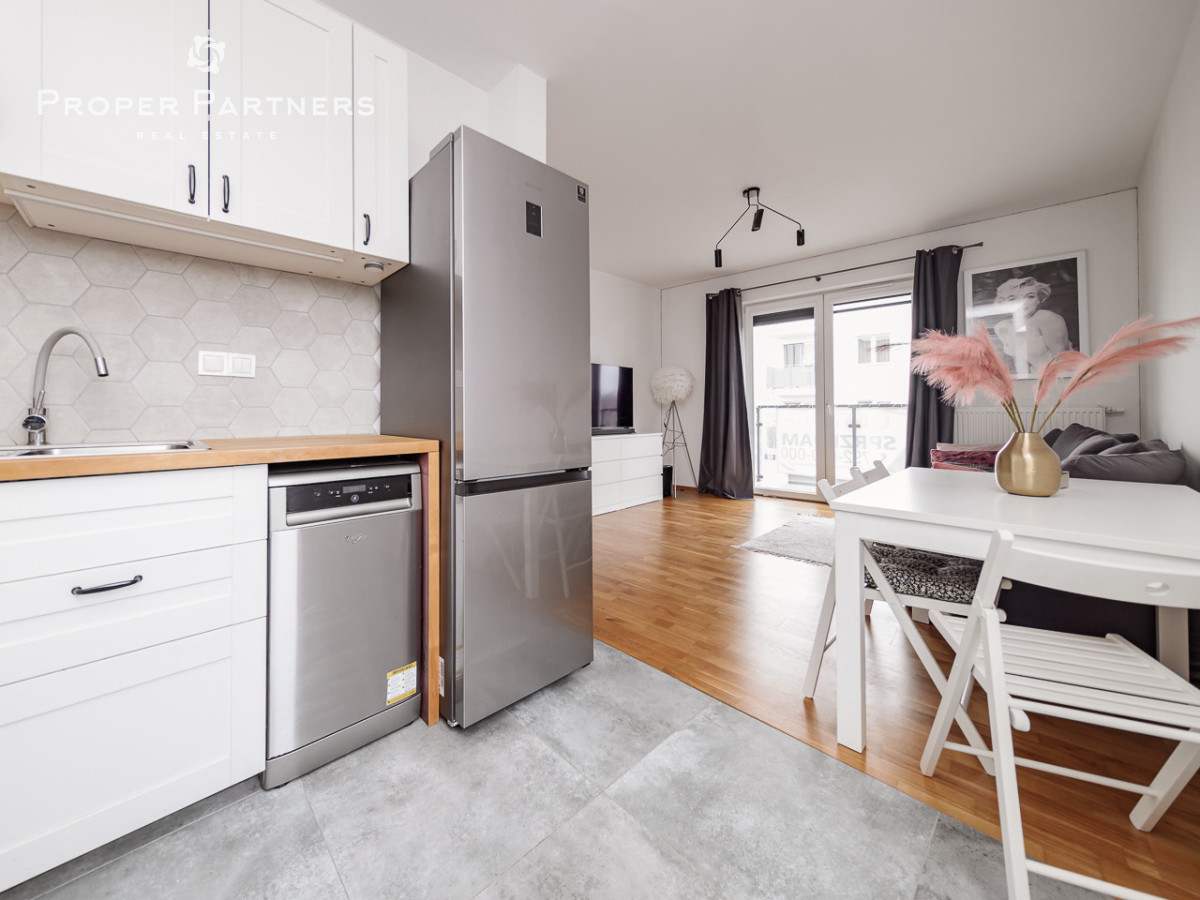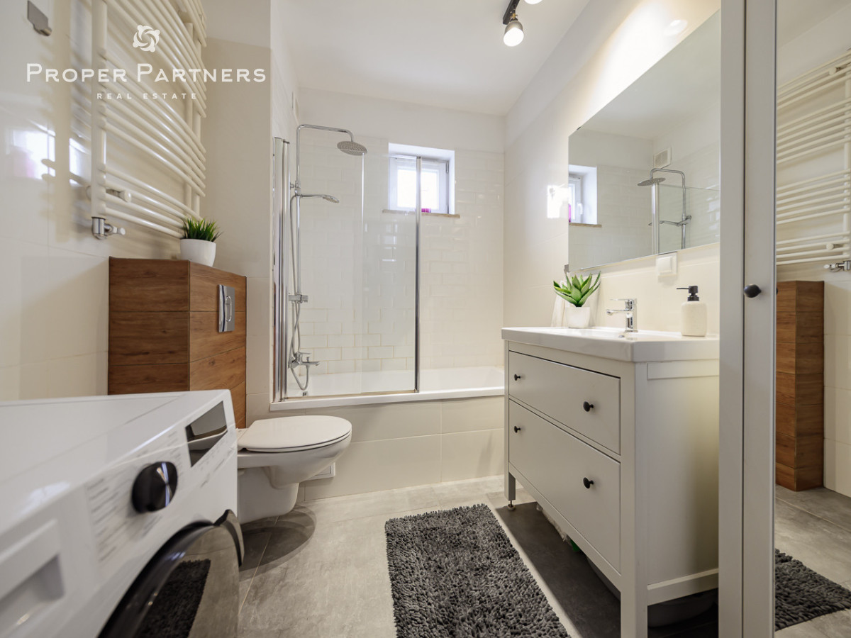 Mieszkanie znajduje się na pierwszym piętrze. Składa się z jasnego salonu z otwartą, widną kuchnią, ustawnej sypialni, łazienki z oknem, a także przedpokoju z dużą, wbudowaną szafą.