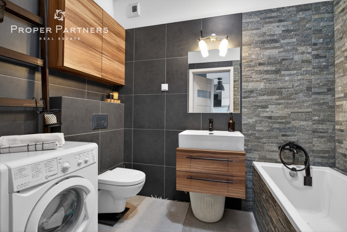 Mieszkanie jest w pełni umeblowane i wyposażone, co pozwala na natychmiastowe zamieszkanie lub szybkie rozpoczęcie wynajmu.