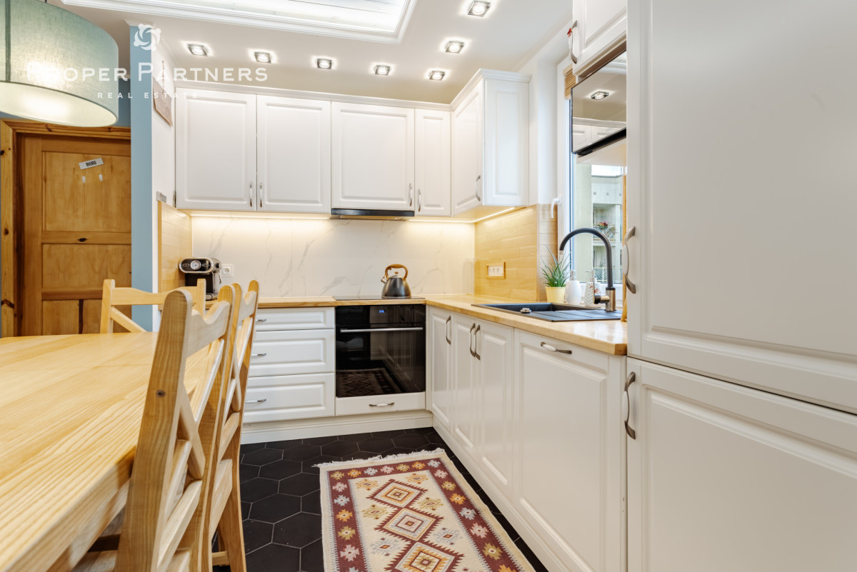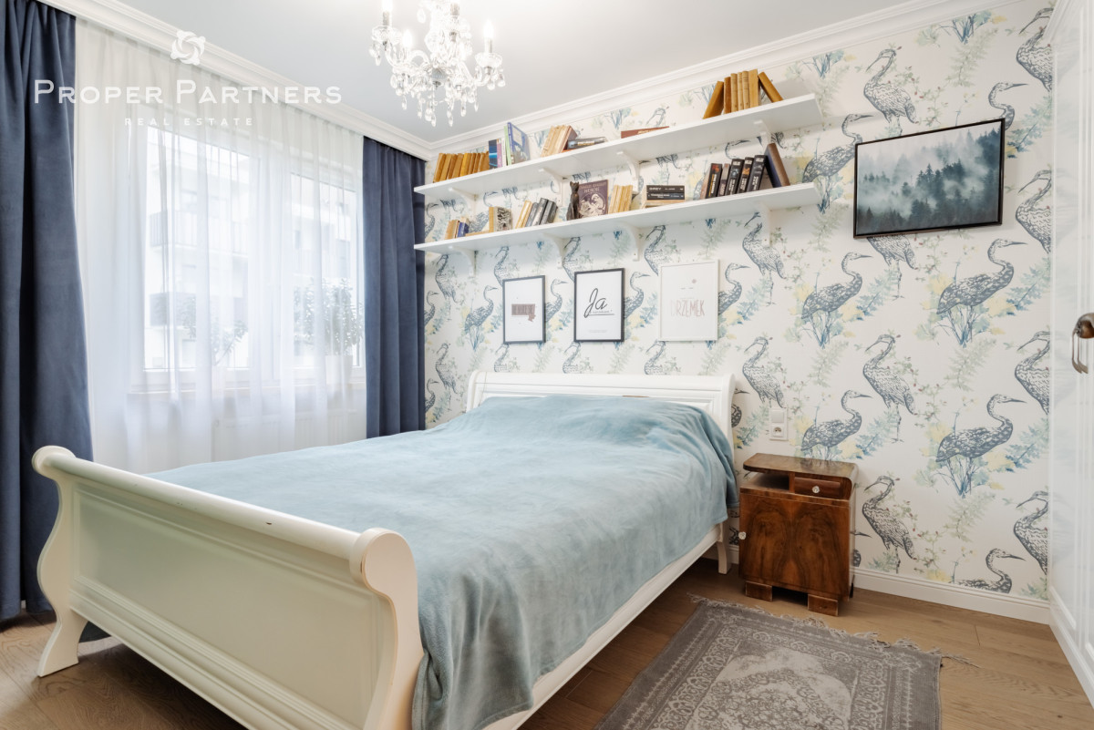 To dwustronne, dobrze doświetlone mieszkanie, zaprojektowane z dbałością o każdy detal i komfort codziennego życia. Wnętrze zostało stworzone we współpracy z projektantem wnętrz, co widać w każdym elemencie wykończenia — od przemyślanego układu po wysoką jakość materiałów.