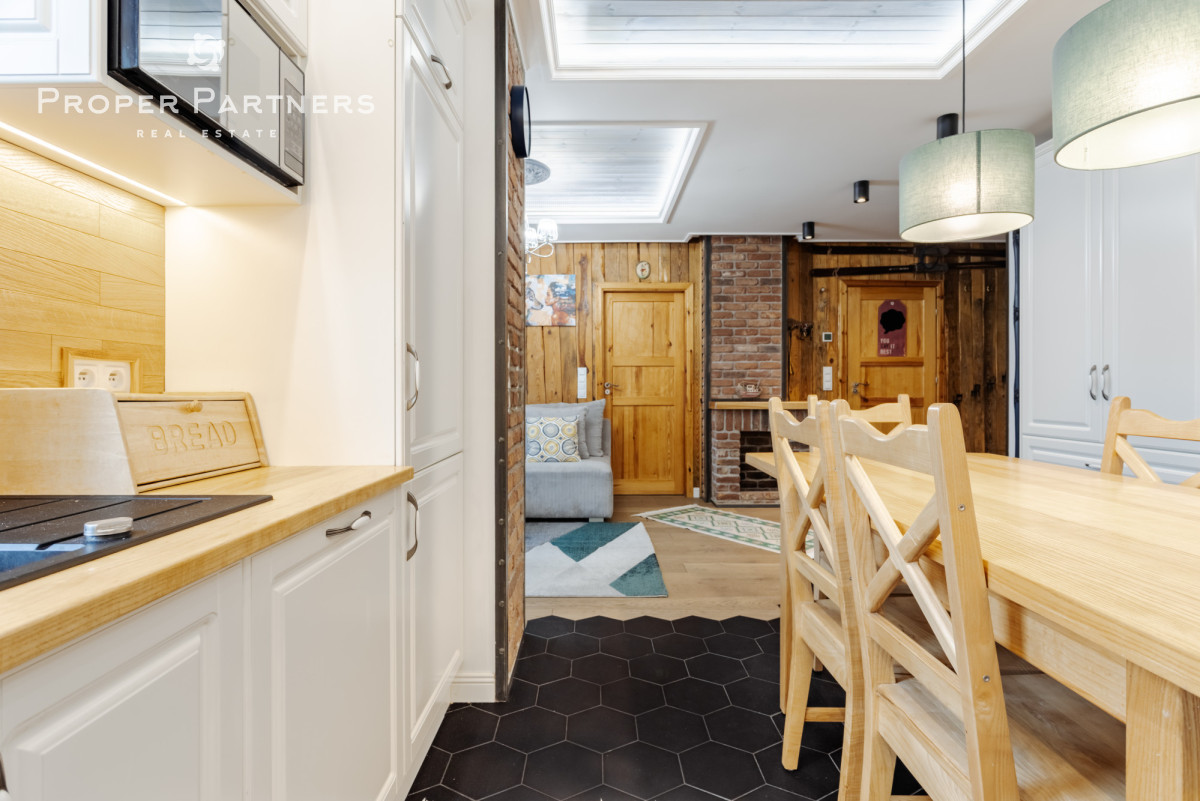 - Nowoczesny aneks kuchenny z pełnym wyposażeniem AGD,