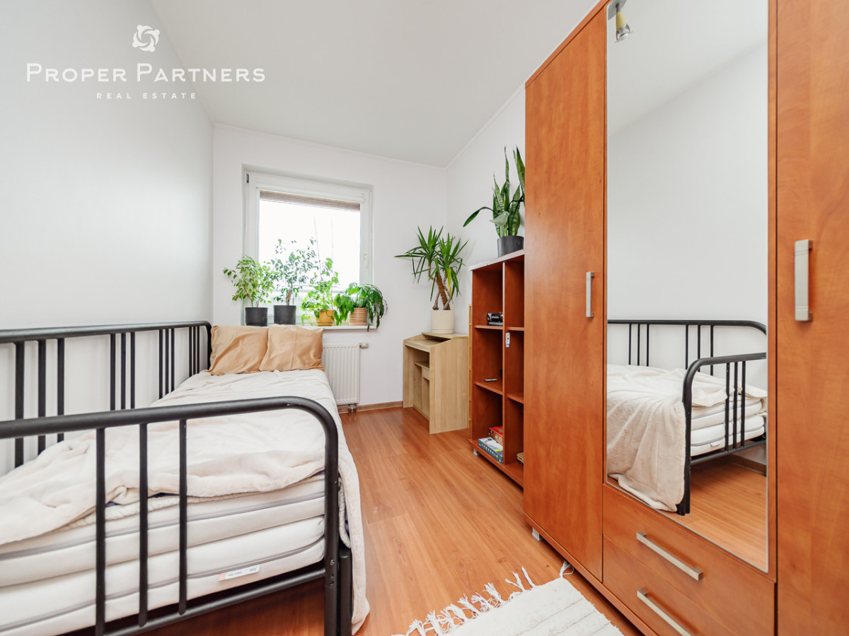 Dwie duże sypialnie - przestronne, ustawne, idealne dla rodziców i dzieci, trzeci, mniejszy pokój - świetny jako pokój dziecka lub gabinet, łazienka z wanną oraz hol.