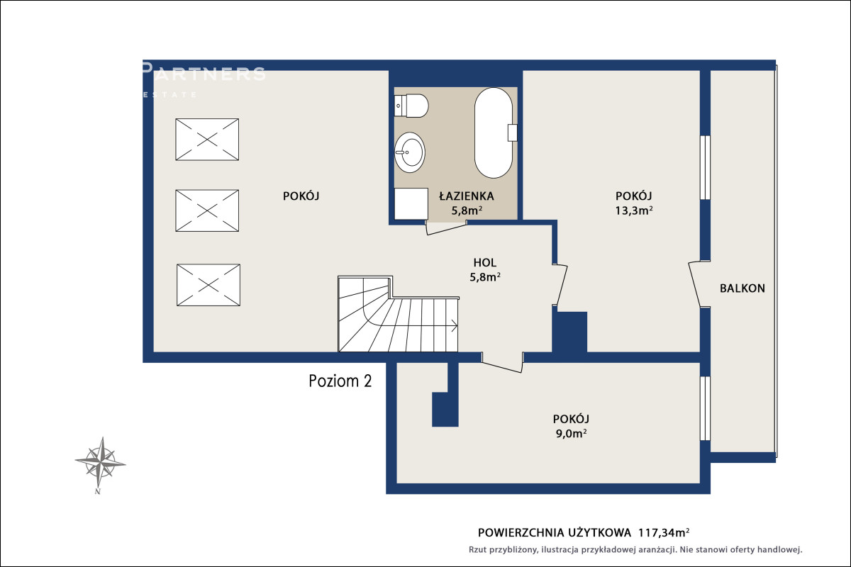 • Duża powierzchnia: 117,34 m² - idealna dla rodziny lub osób potrzebujących wielu funkcjonalnych pomieszczeń.