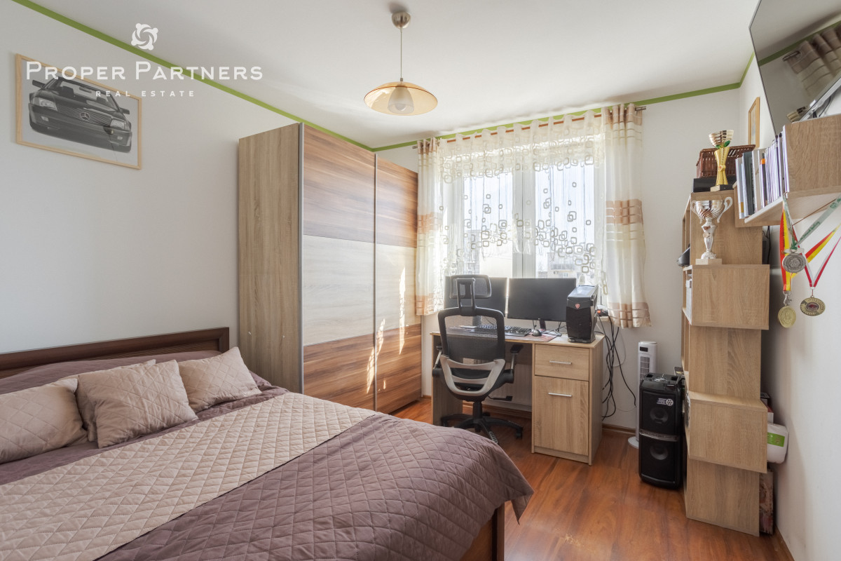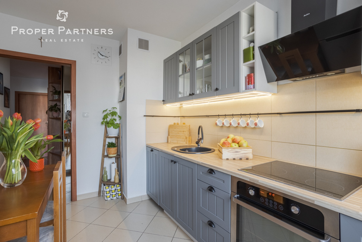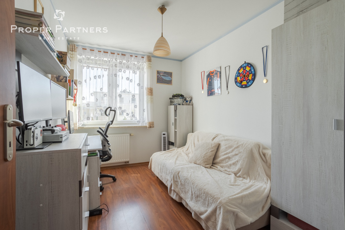 Duża ilość schowków sprawia, że pomieści ono mnóstwo rzeczy. Na podłodze w pokojach położone są panele a w przedpokoju, łazience i kuchni gres. Mieszkanie po odświeżeniu będzie idealnym miejscem dla nowej rodziny. Jest ono sprzedawane z zabudową stałą.Jest jasne i ciepłe, dodatkowym atutem jest balkon z ładnym widokiem na osiedle.