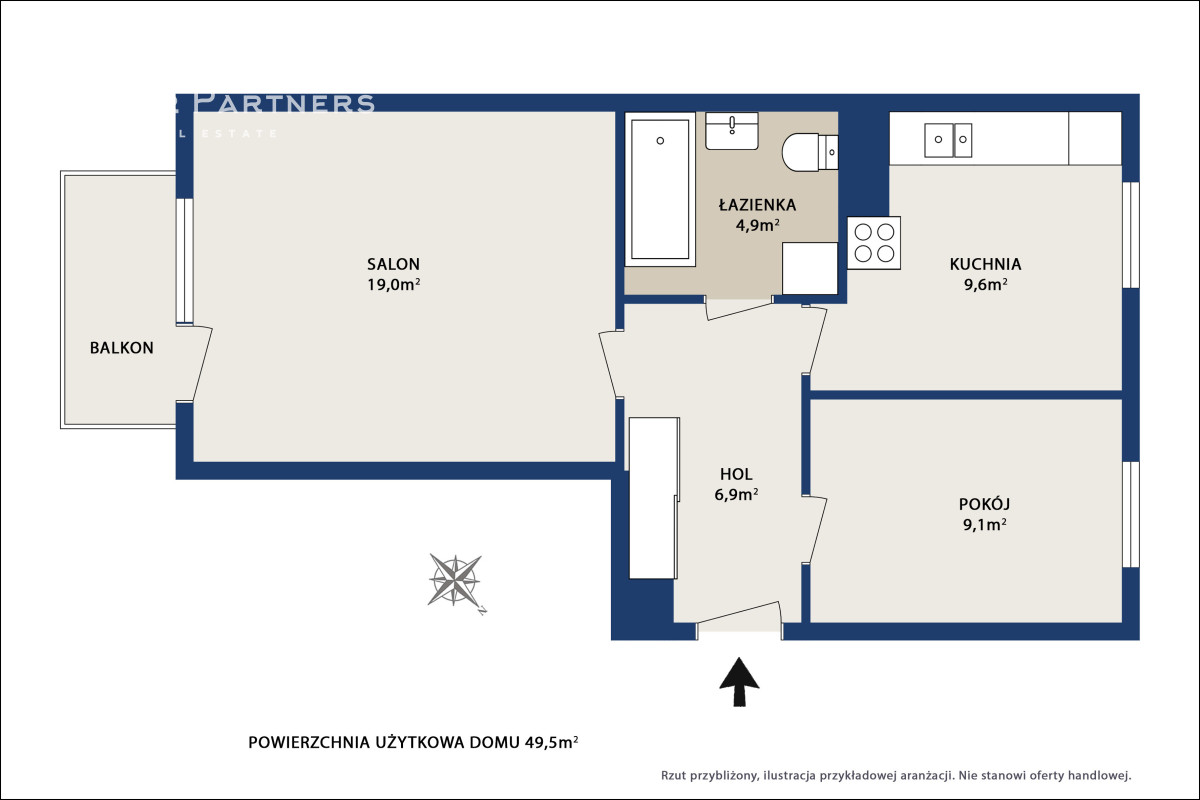Mieszkanie o powierzchni 49,5m2 składa się z salonu o ekspozycji południowo wschodniej, z którego wychodzi się na balkon, z sypialni, z oddzielnej, widnej kuchni, łazienki i holu z szafą.