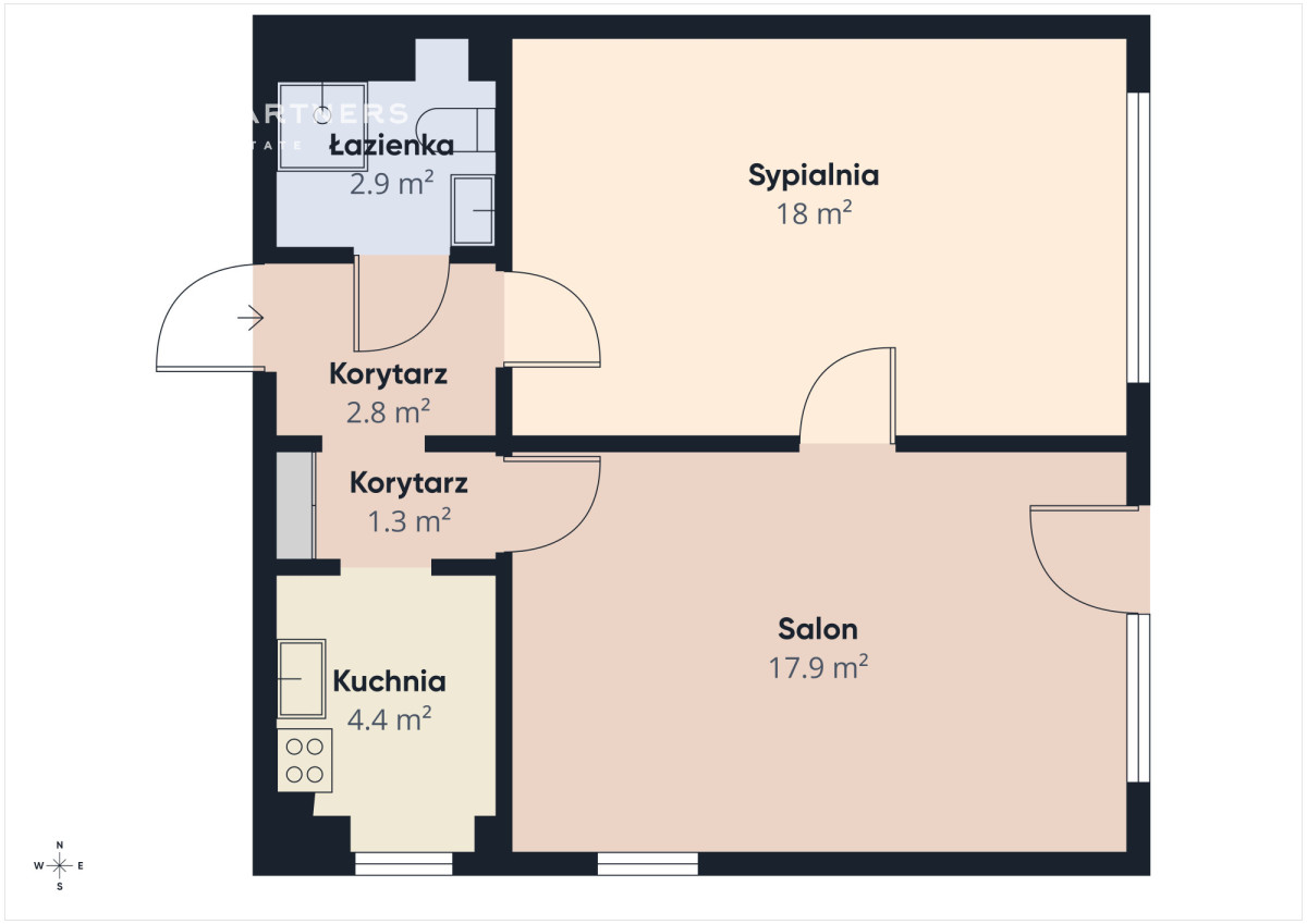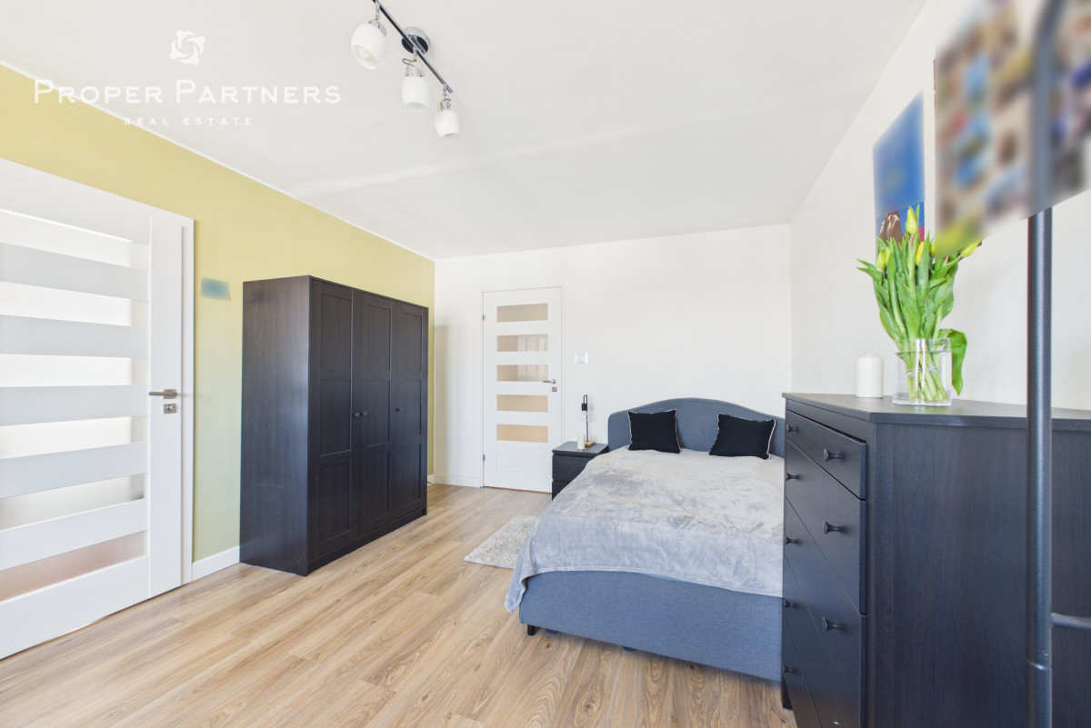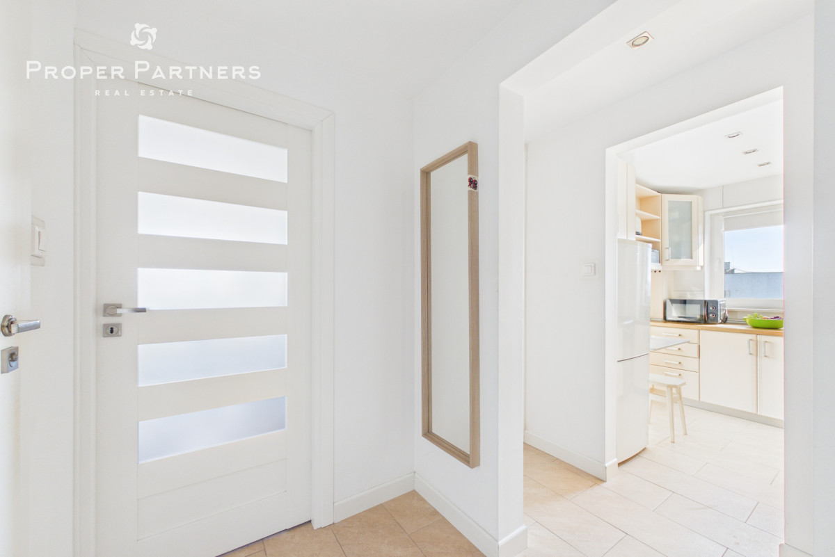 Układ mieszkania jest funkcjonalny i czytelny. Składa się z dwóch niezależnych pokoi, oddzielnej kuchni z oknem, przedpokoju oraz łazienki z WC. Dzięki wysokiemu piętru mieszkanie jest dobrze doświetlone i daje poczucie przestrzeni.