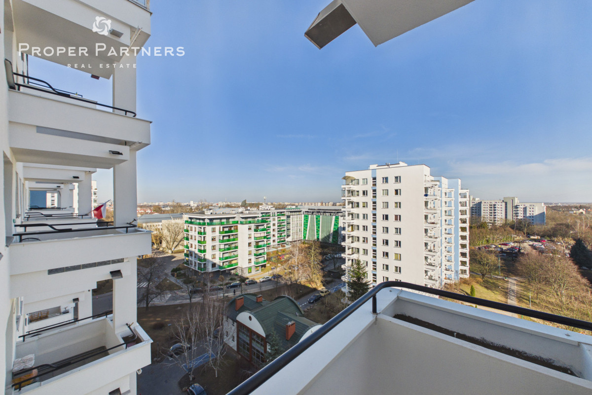 Na sprzedaż 2-pokojowe mieszkanie z balkonem o powierzchni 45,8 m² położone na 9 piętrze budynku z windą przy ul. Mozarta na Mokotowie - Służew nad Dolinką.