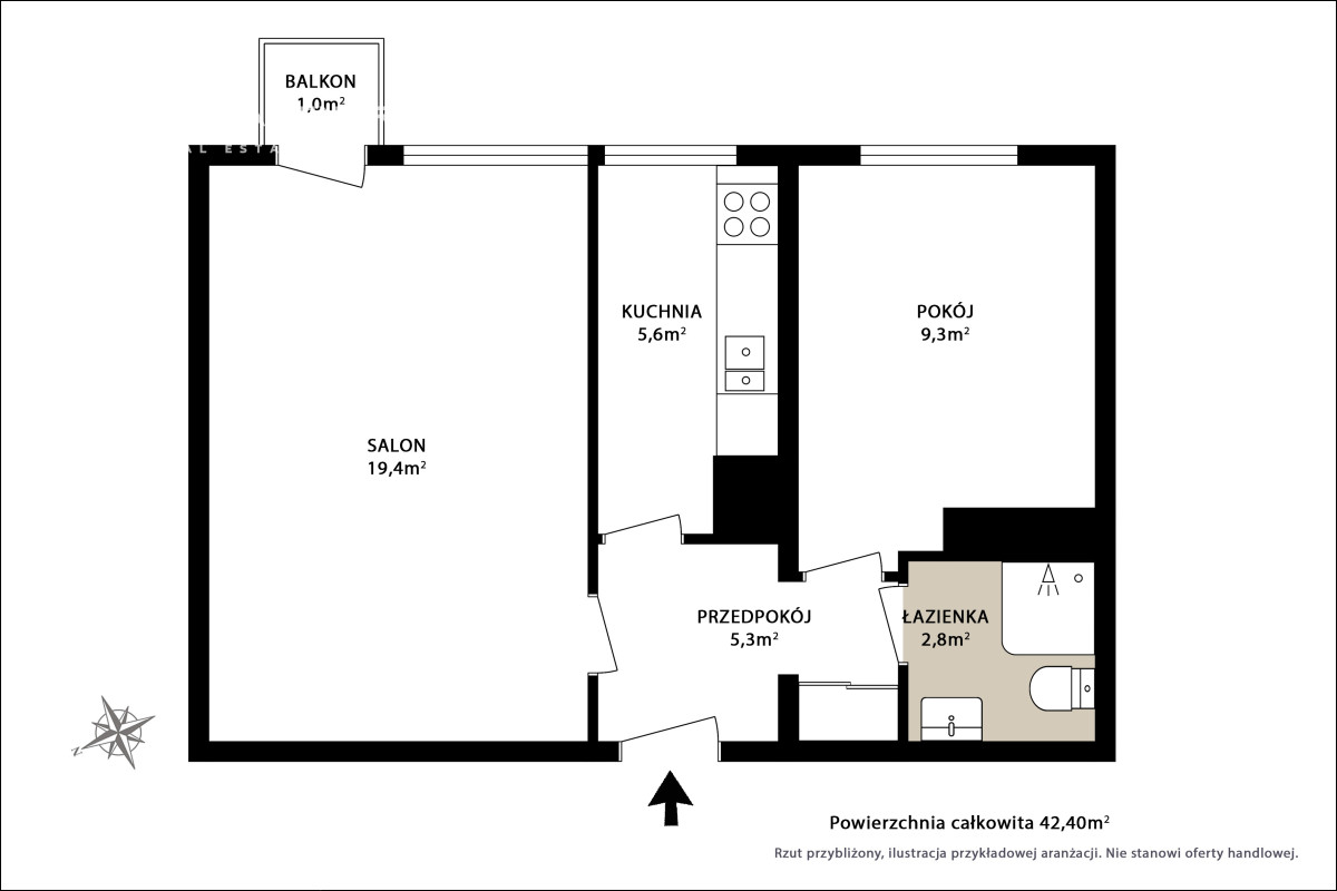 Mieszkanie o powierzchni 42,4 m² składa się z: