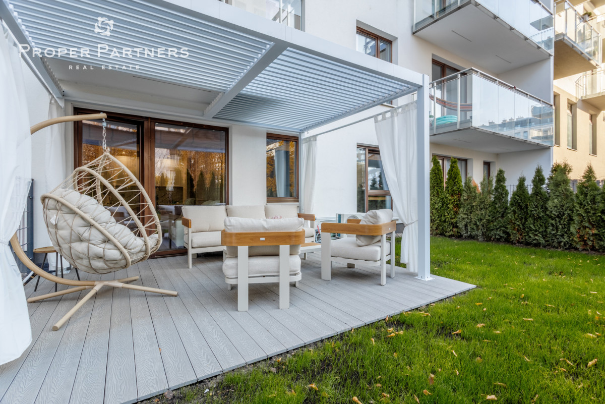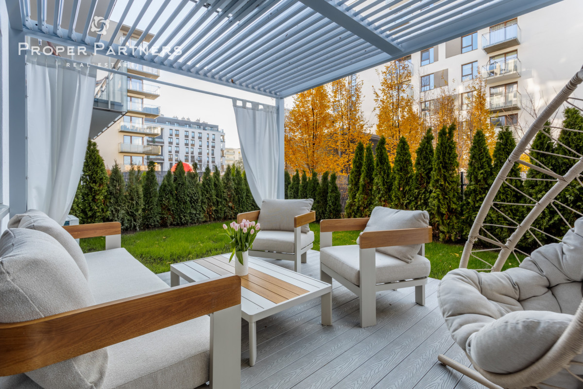 - Idealna przestrzeń na poranną kawę, spotkania towarzyskie lub bezpieczną strefę dla dzieci i zwierząt