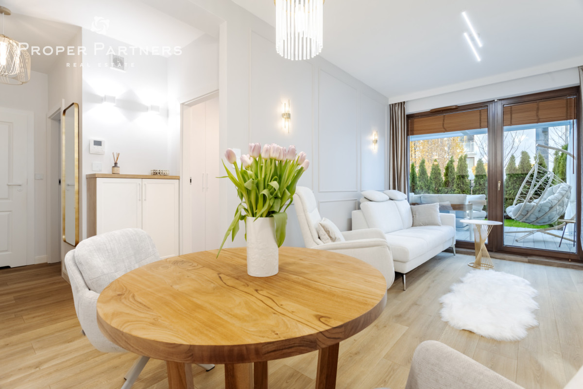 Mieszkanie usytuowane jest na parterze i posiada prywatny ogródek o powierzchni 49,24 m², który stanowi naturalne przedłużenie części dziennej i zapewnia komfort relaksu na świeżym powietrzu - bez potrzeby opuszczania domu.