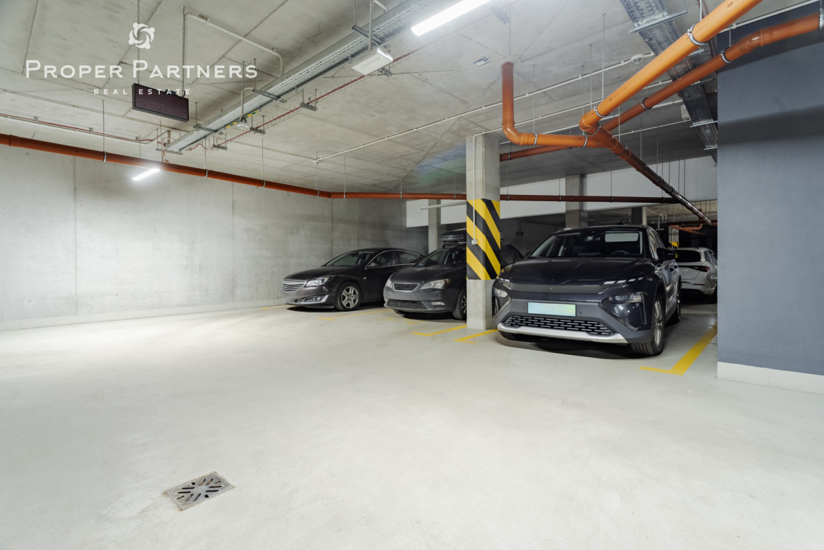 Do mieszkania przynależą dwa niezależne miejsca parkingowe w garażu podziemnym, znajdujące się obok siebie.