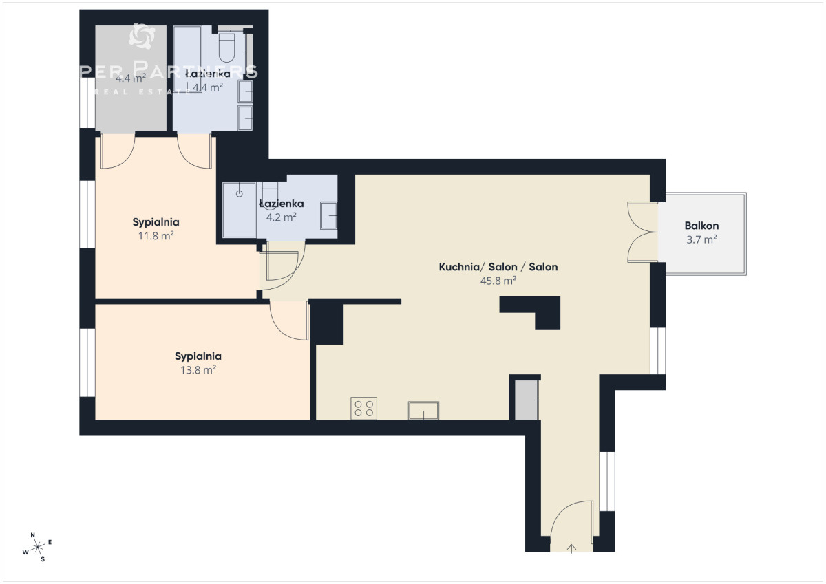 - sypialni (11,8 m2),