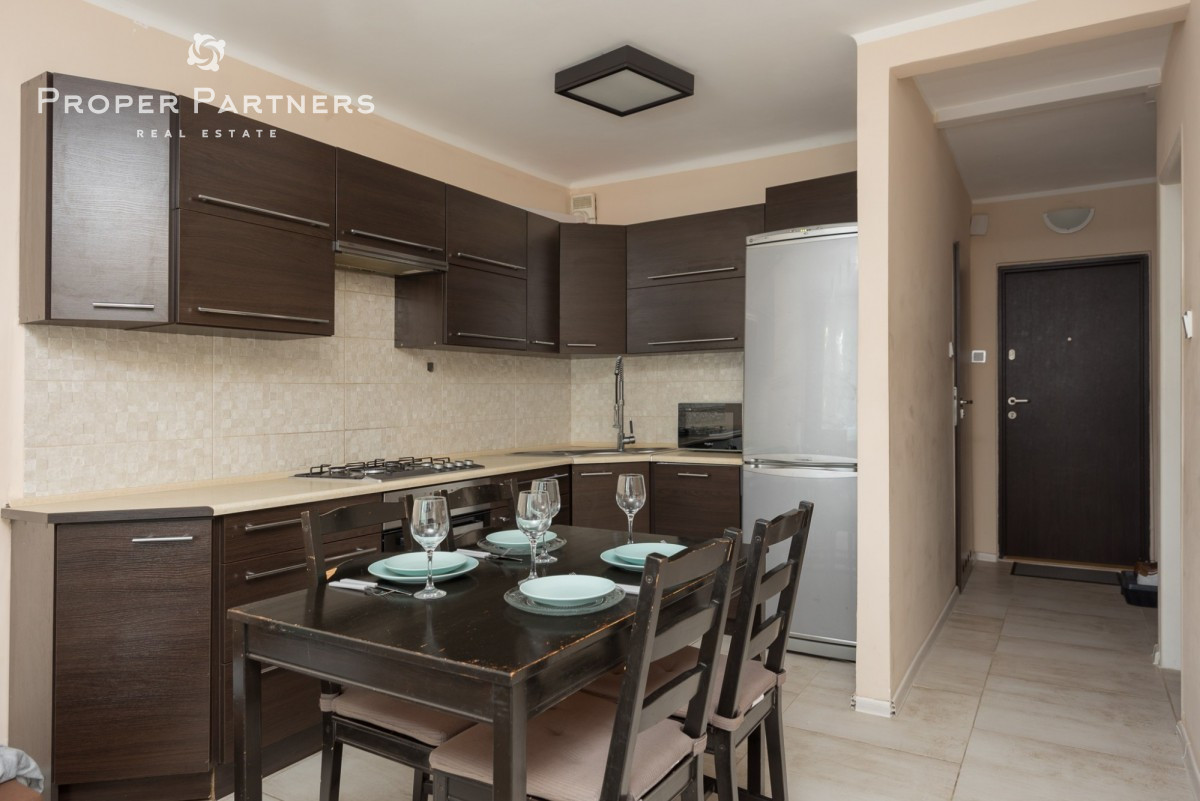 Mieszkanie jest umeblowane i wyposażone w niezbędne sprzęty kuchenne: lodówka, kuchenka, piekarnik, pralka.