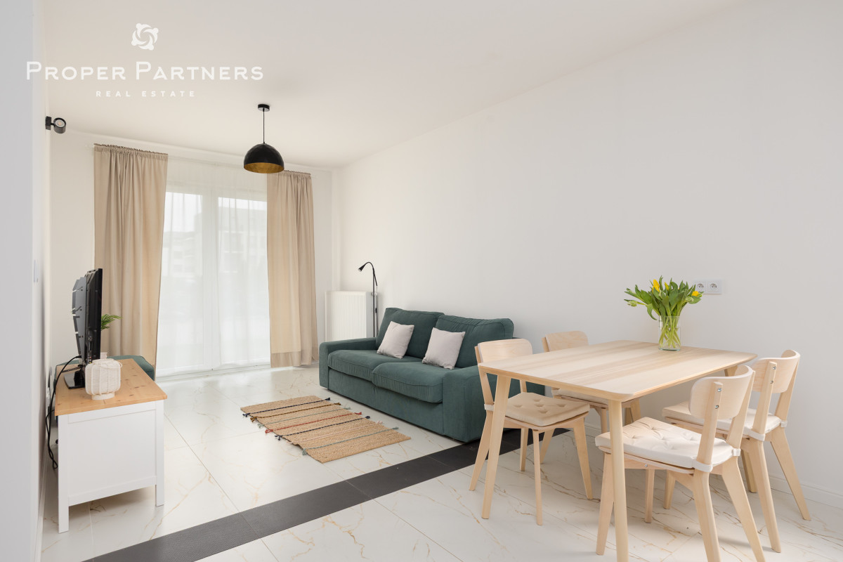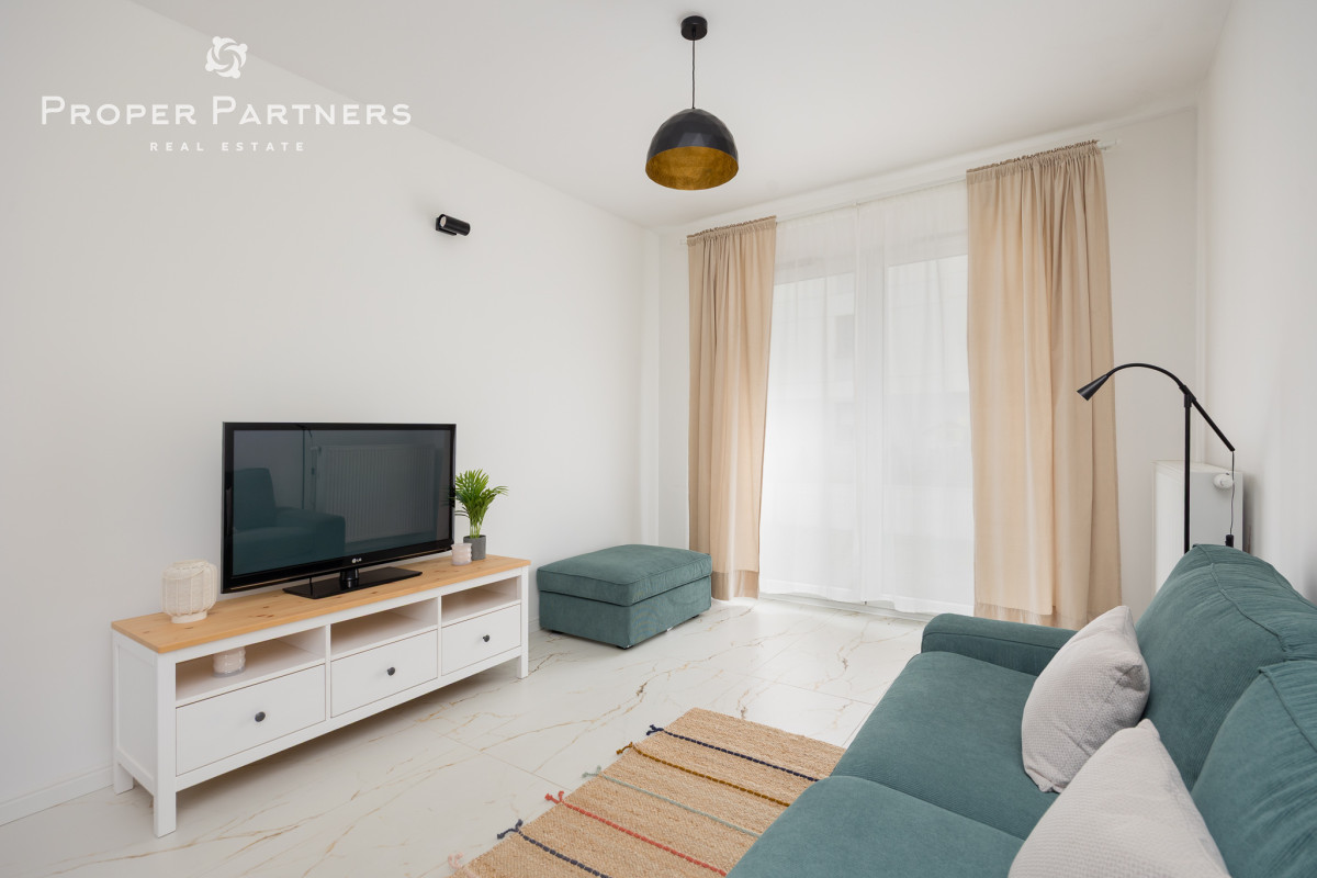 Mieszkanie jest nowocześnie umeblowane i wyposażone we wszystkie niezbędne sprzęty RTV i AGD oraz nowe naczynia i sztućce.